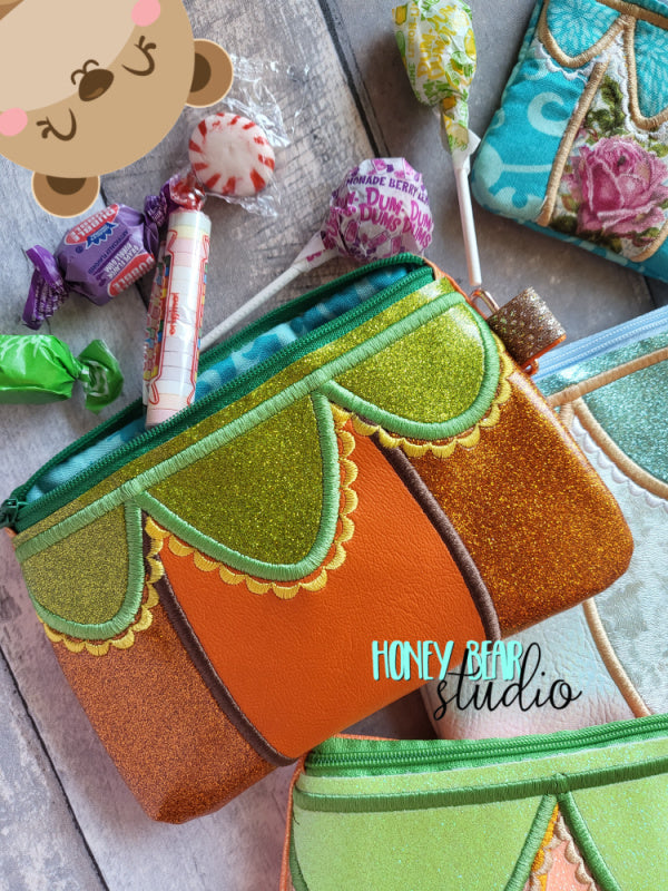This clutch was intended to be a pumpkin bag, but it also looks fantastic as a princess bag! Charmed is easy to make with applique pieces in fabric or vinyl. The bag is fully lined in the hoop. You'll get 4x4, 5x7, 6x10, and 8x12 sizes. These are completed in a single hooping. There is a tiny amount of hand stitching on the turning hole, but you can use hem tape or glue instead!